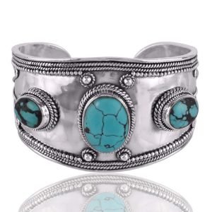 Handcrafted Silver Turquoise Cuff Bracelet – Boho Statement Jewelry