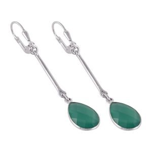 Silver Green Onyx Dangle Earrings – Elegant Sterling Silver Jewelry