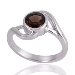 Elegant Sterling Silver Smoky Quartz Solitaire Ring – Unique Swirl Design