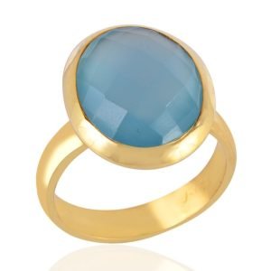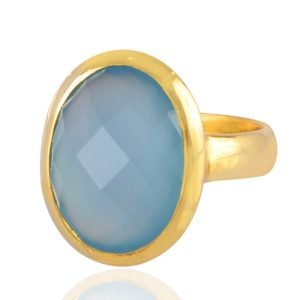 Blue Chalcedony Gold-Plated Ring – Elegant Handcrafted Statement Jewelry