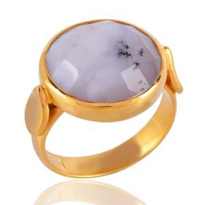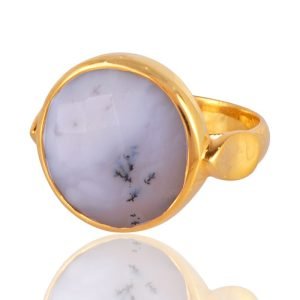 Elegant Dendritic Opal Statement Ring in Gold-Plated Brass