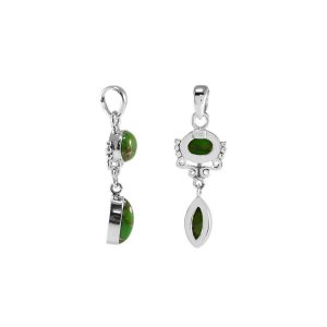 Sterling Silver Green Turquoise Dangle Pendant for Women