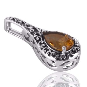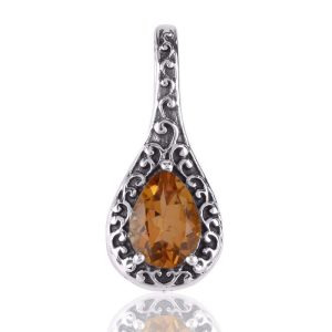 Vintage Citrine Pendant in Sterling Silver – Elegant Filigree Design
