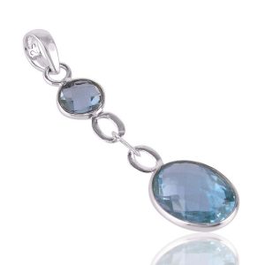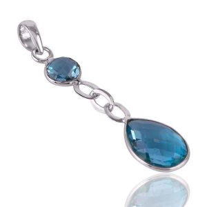 Sterling Silver Blue Topaz Dangle Pendant – Elegant and Timeless
