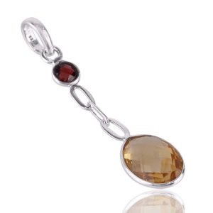 Sterling Silver Citrine & Garnet Dangle Charm – Elegant & Unique