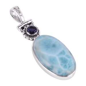 Sterling Silver Larimar & Iolite Pendant – Elegant Ocean-Inspired Charm